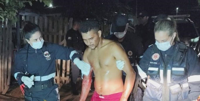Ferido no braço direito, ele conseguiu buscar ajuda e foi encontrado por moradores na Travessa São Joaquim. Acionado, o Serviço de Atendimento Móvel de Urgência (Samu) realizou os primeiros socorros e o encaminhou ao Pronto-Socorro de Rio Branco, onde segue sob cuidados médicos.