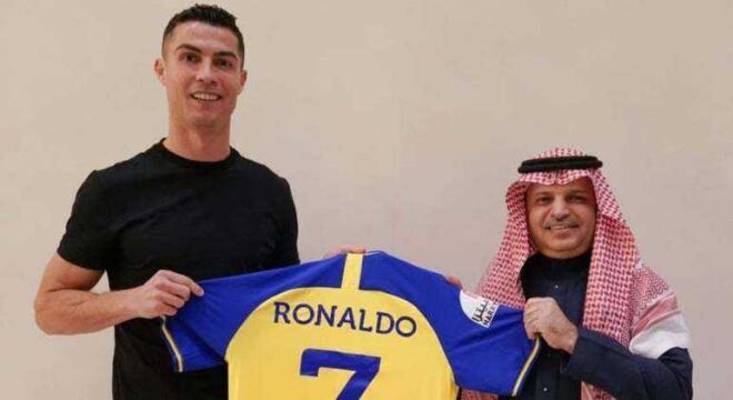 Nova contratação do Al-Nassr, Cristiano Ronaldo receberá cerca de 500 milhões de euros (R$ 2,8 bilhões) durante sete anos. Além do acordo como jogador do clube até junho de 2025, o atacante continuará sendo uma espécie de embaixador da equipe saudita e será peça-chave para o país, que busca sediar a Copa do Mundo 2030.