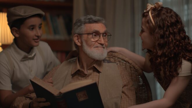 O cenário explora o ambiente lúdico de contação de histórias, conhecimento transmitido oralmente numa interação entre gerações. O curta-metragem traz a narrativa de um avô que reúne seus netos ao entardecer para compartilhar histórias e lendas mágicas.