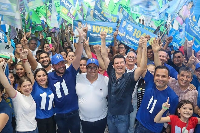 Na pesquisa estimulada, o candidato Carlinhos do Pelado (PP), apoiado pela atual prefeita Fernanda Hassem, lidera as intenções de votos com 48,2% contra 38,4% da candidata do MDB, a ex-prefeita Leila Galvão.