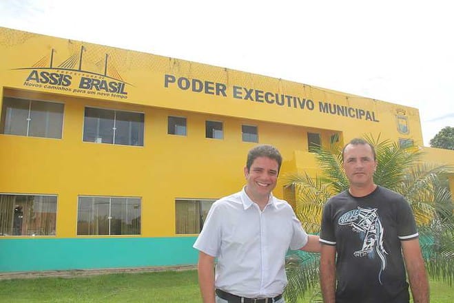 Gladson Cameli com o vice-prefeito de Assis Brasil, Zé do Posto, durante as visitas pelo interior do Acre – Foto: Alexandre Lima