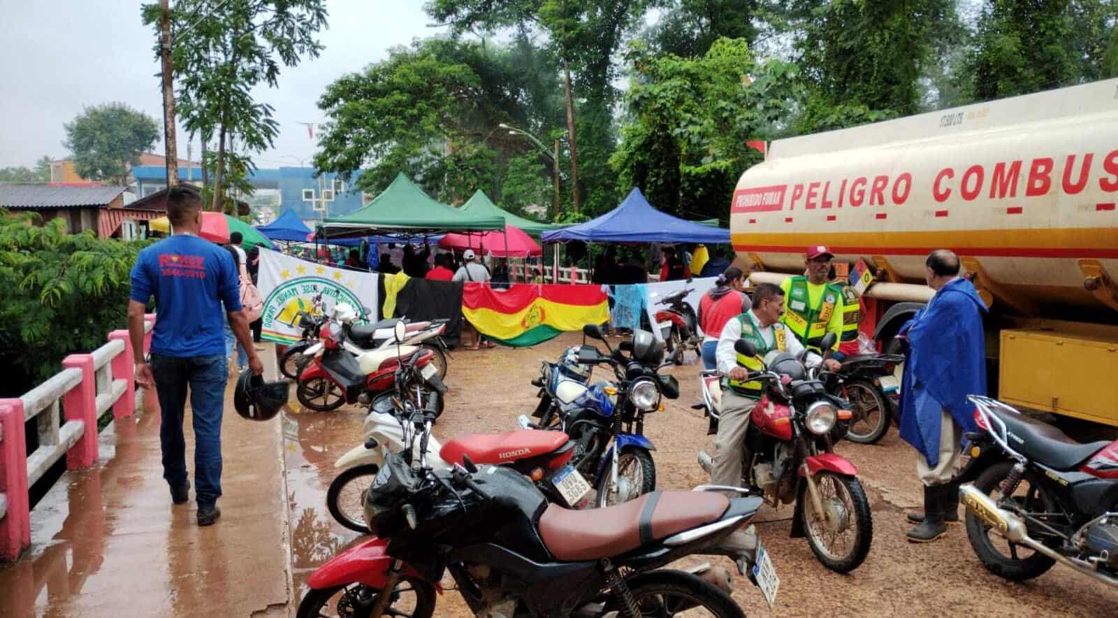 Devido às chuvas os manifestantes montaram tendas para se abrigarem, segundo informações dos representantes das categorias sindicais bolivianas, o bloqueio vai até as 16h horário brasileiro desta sexta feira 24 de março.