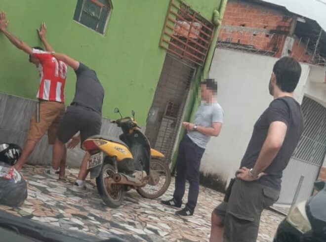 Os delegados, Bruno Coelho, Leonardo Meyohas e Danilo César, deslocavam-se após horário de almoço e se depararam com um homem agredindo uma mulher em via pública.