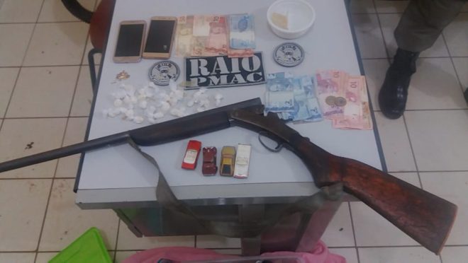 Arma e drogas foram apreendidos durante operação da PM em Brasiléia.