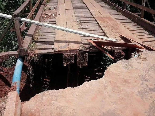 Foto tirada por moradores de como se encontra a ponte nos dias de hoje e pode piorar com as chuvas