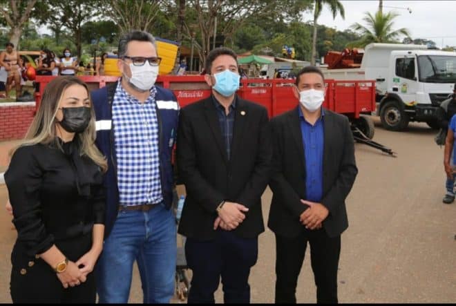 O deputado federal Alan Rick (DEM), participou na sexta-feira, 14, a convite do prefeito Jerry Correia, de solenidade no município de Assis Brasil, em comemoração aos 45 anos de emancipação da cidade. Como parte das comemorações o deputado fez a entrega, juntamente com o governador Gladson Cameli, de um caminhão basculante Mercedes-Benz, fruto de emenda parlamentar dele, via SUDAM, no valor de R$ 300.000,00 que contemplou também a aquisição de três carretas agrícolas e duas roçadeiras hidráulicas.