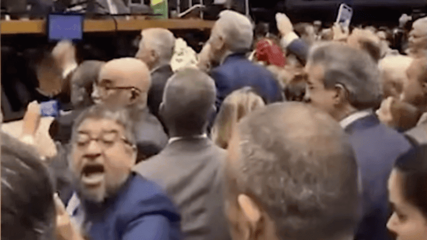 Vídeo mostra quando Washington Quaquá agride Messias Donato; a briga ocorreu na sessão de promulgação da reforma tributária