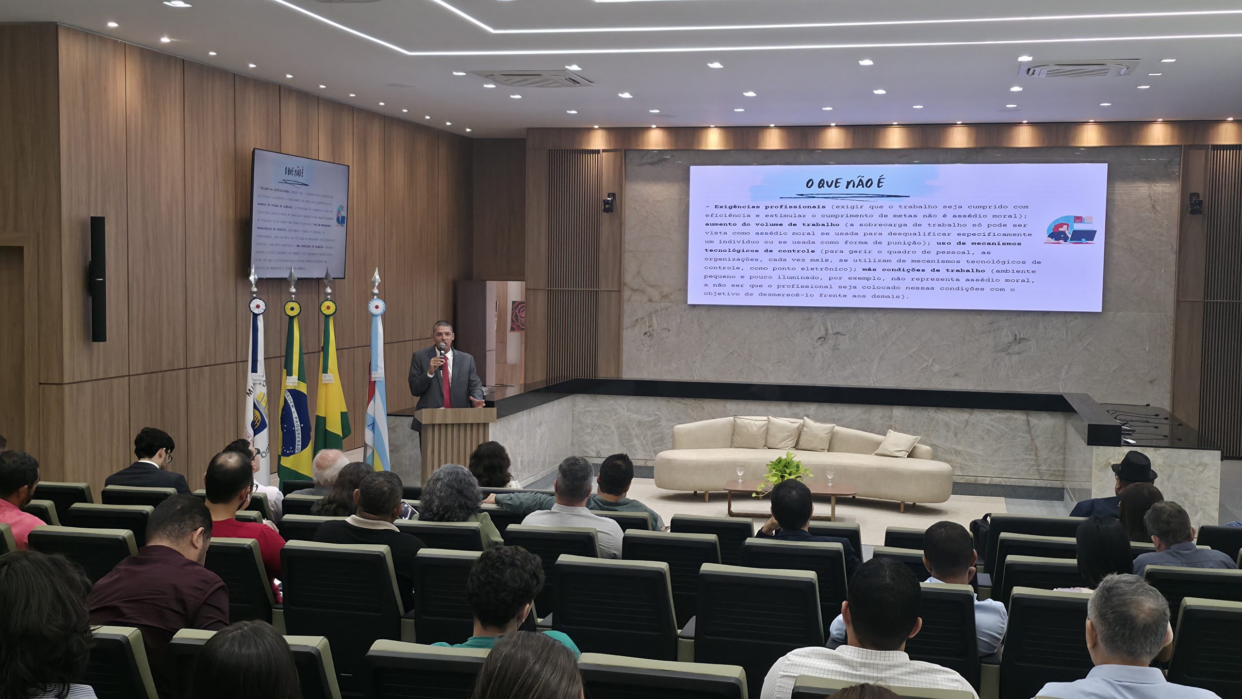 Já o superintendente regional do Trabalho e Emprego no Acre, Dr. Leonardo Lani fez uma apresentação ressaltando a urgência do combate ao assédio no ambiente corporativo, tratando-o não apenas como uma questão ética, mas como um risco psicossocial e legal.