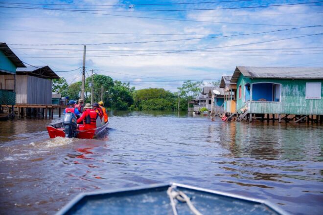 11 bairros atingidos pelas águas do rio Juruá em Cruzeiro do Sul e prefeito Zequinha coordena atendimento às famílias