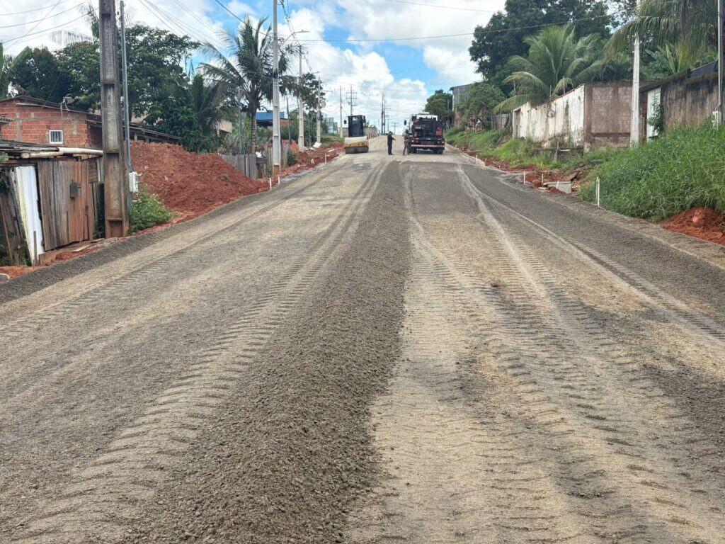 O governo do Acre, por meio do Departamento de Estradas de Rodagem, Infraestrutura Hidroviária e Aeroportuária (Deracre), avança nesta quinta-feira, 29, na pavimentação da Estrada Dias Martins, no trecho do Conjunto Universitário, em Rio Branco. Os serviços estão concentrados na execução da base em brita graduada simples (BGS), etapa que antecede a aplicação do asfalto.