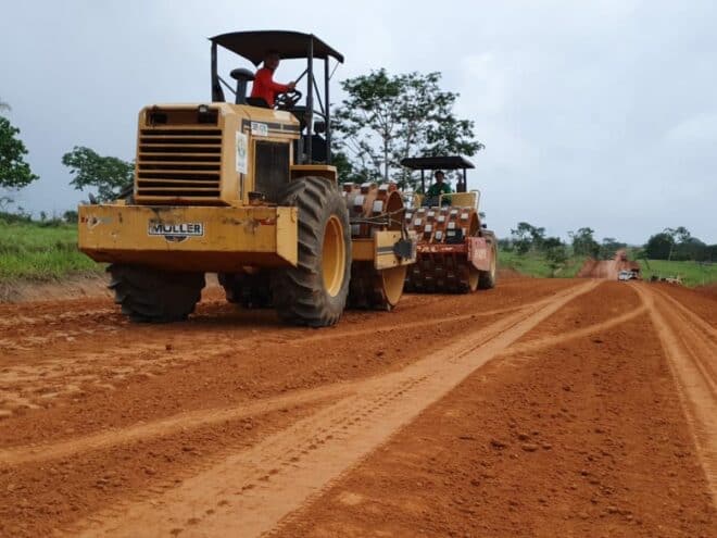 Tem sido feita, ainda, a regularização de subleito, execução de valetões e execução em 800 metros de sub-base. Para realização desses serviços há utilização de duas motoniveladoras, três rolos compactadores, duas escavadeiras hidráulicas, uma pá carregadeira, três tratores agrícolas com grade, seis caminhões basculantes e três caminhões irrigadores.