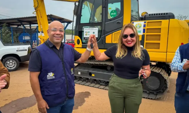 A presidente do Deracre, Sula Ximenes, recebeu nesta segunda-feira, 15, quatro novos equipamentos que reforçam a capacidade de execução de obras em todo o Acre. A chegada das máquinas fortalece o trabalho da autarquia e permite que as equipes atendam com mais eficiência as comunidades que dependem da infraestrutura estadual.