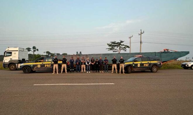 Deracre solicitou apoio da Polícia Rodoviária Federal para transporte da embarcação. Foto: Ascom/Deracre