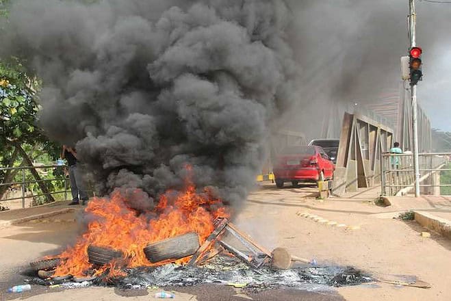 Pneus foram queimados por populares como forma de prostesto contra a ponte que vem oferecendo perigo e acidentes – Foto: Alexandre Lima