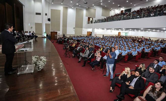 O presidente do Tribunal de Justiça do Acre, desembargador Francisco Djalma, atendendo convite do governador Gladson Cameli, prestigiou, na noite dessa segunda-feira, 1º, no teatro da UFAC, a aula inaugural do Curso de Formação Policial da Polícia Civil, que contempla 275 aprovados no último concurso da instituição, entre agentes, delegados, escrivães e auxiliares de necropsia.