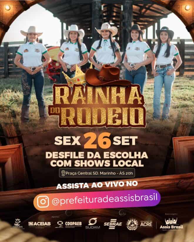A população poderá acompanhar a disputa das candidatas ao título ao vivo por meio do perfil oficial da @prefeituradeassisbrasil no Instagram.