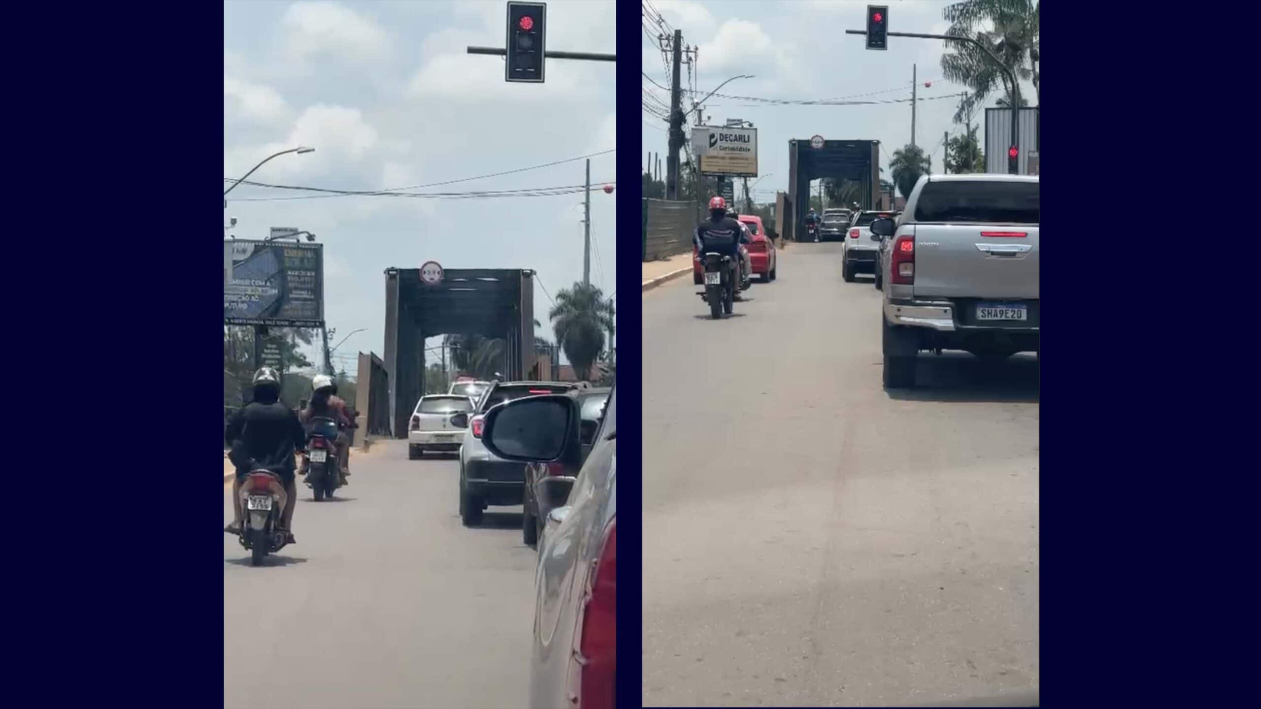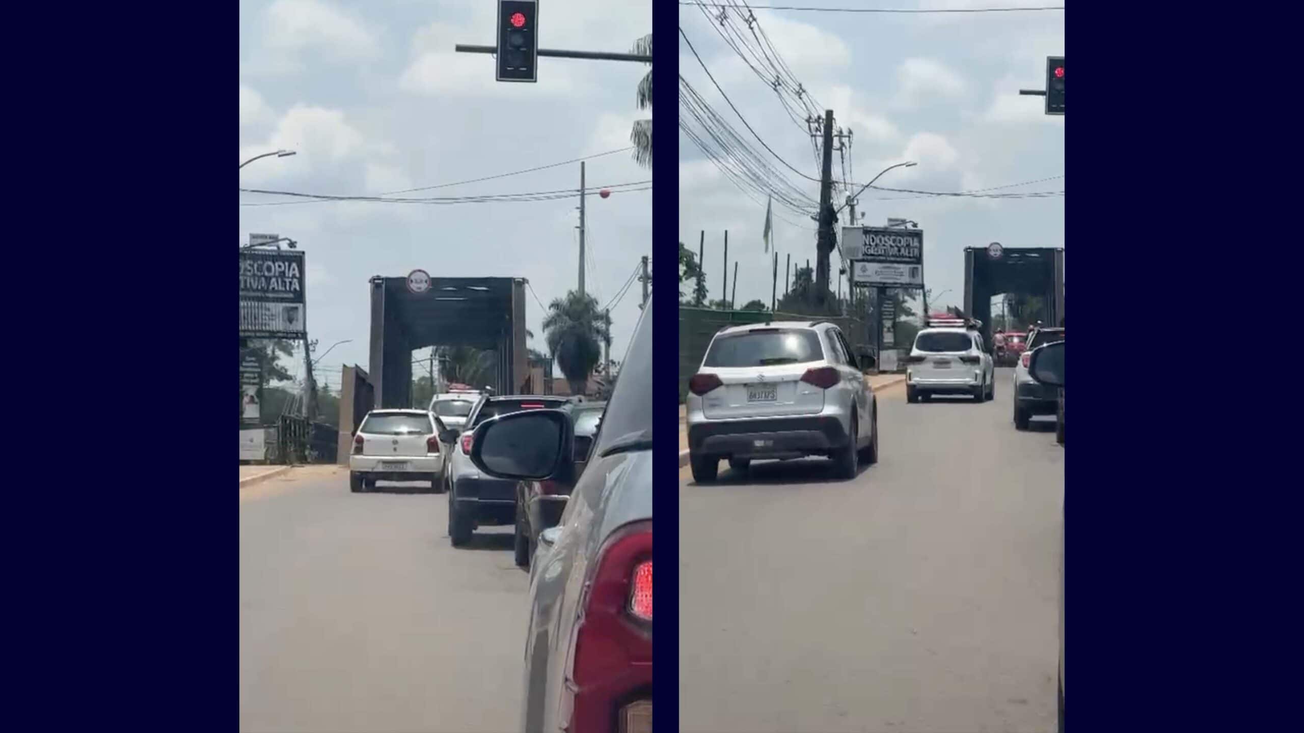 Condutores ignoram o sinal vermelho na ponte José Augusto, que liga as cidades de Epitaciolândia e Brasiléia, as vezes causando transtornos – Foto captura