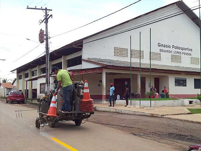 A equipe de engenharia de trânsito do Detran está no município de Brasileia desde a segunda-feira, 24, onde implementa e revitaliza sinalização horizontal e vertical de vias públicas. Ao total, o serviço compreende a fixação de 31 placas e 10.600 metros de pintura, entre faixas de pedestres, eixos divisores de pistas, entre outros sinais.