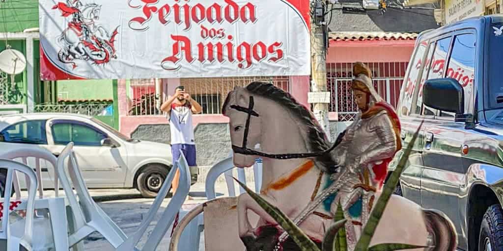 Apesar de São Jorge ser um santo católico, a celebração de seu dia, 23 de abril, com feijoadas extrapola as fronteiras dessa religião. A origem do festejo vem, na realidade, das religiões de matriz africana.