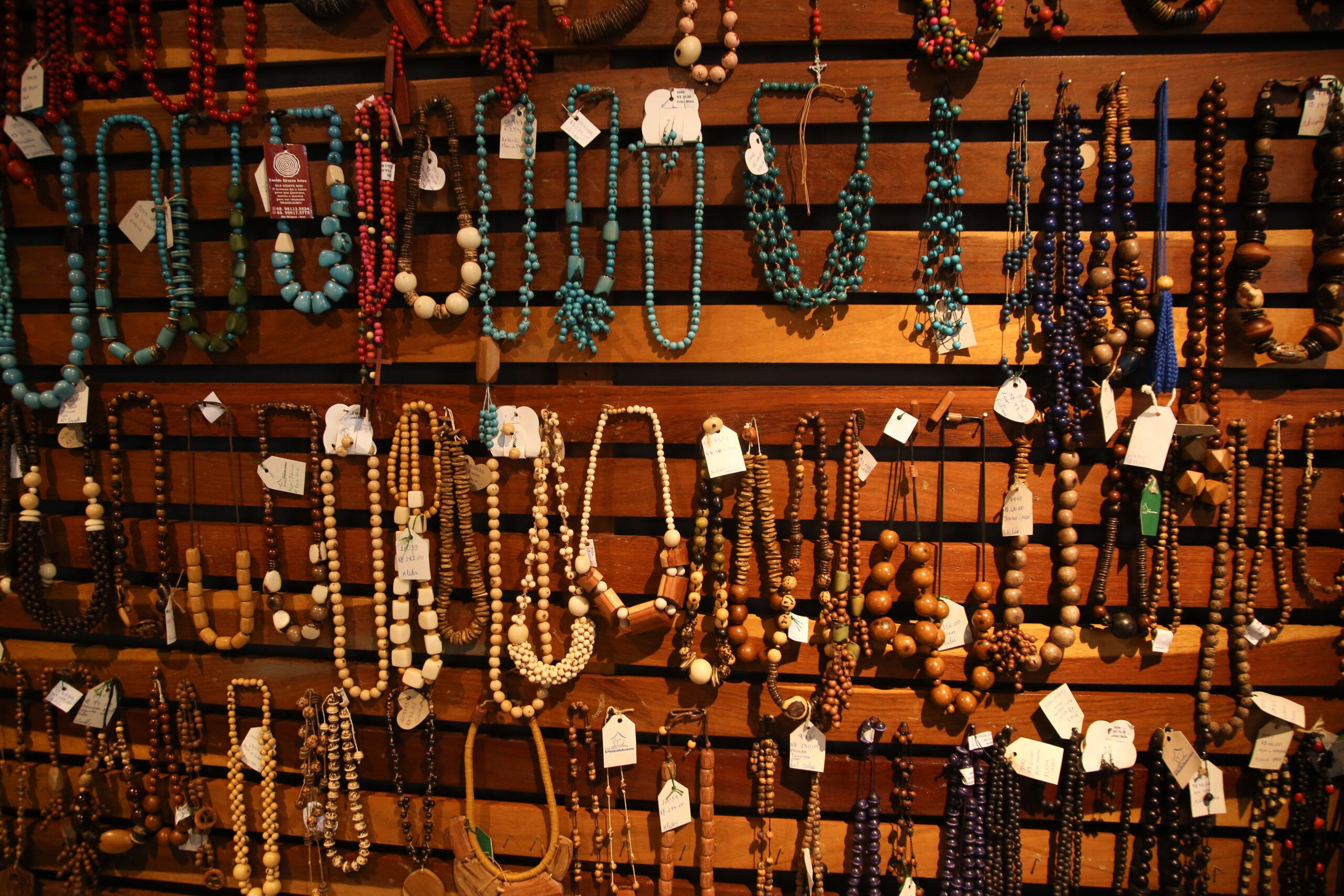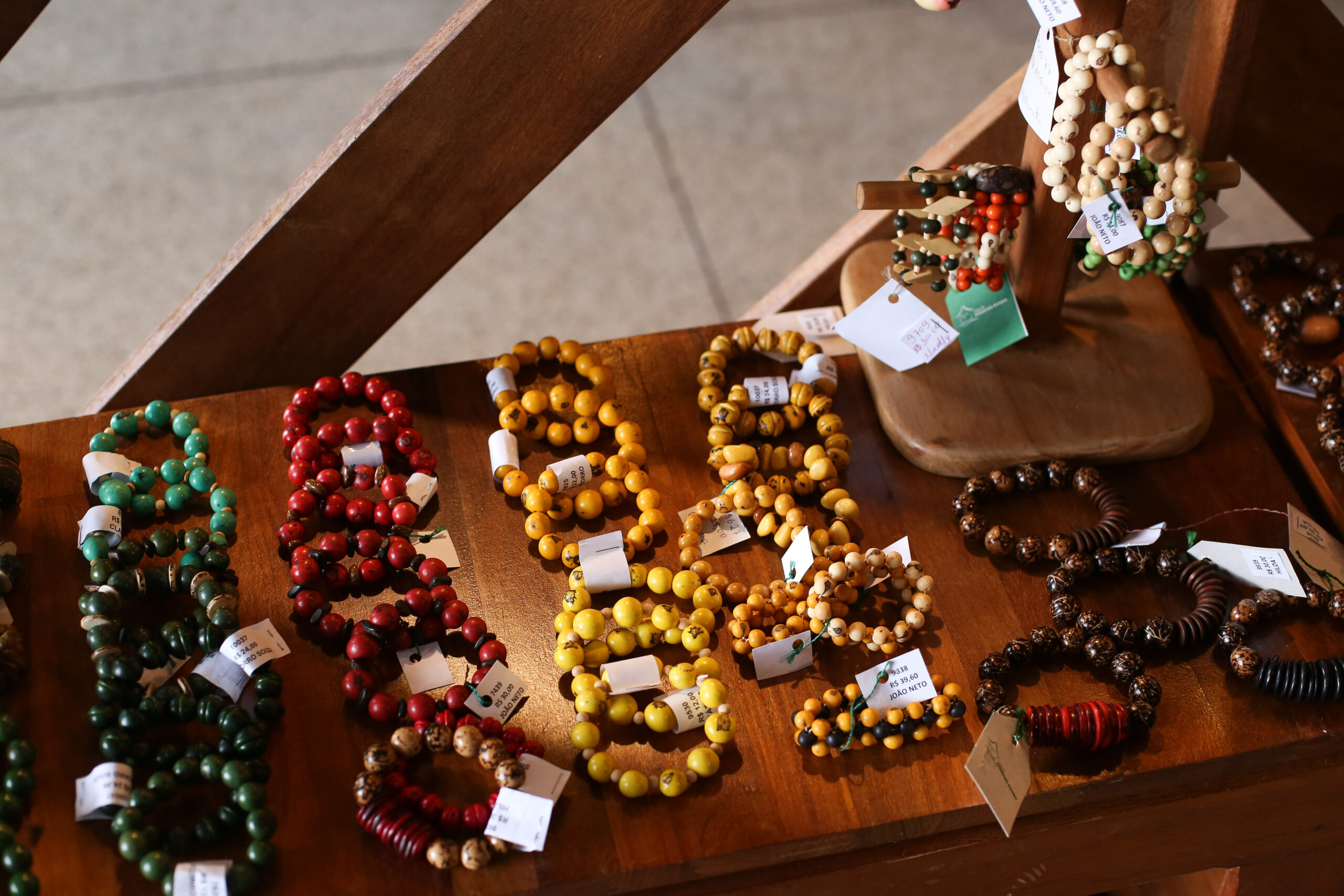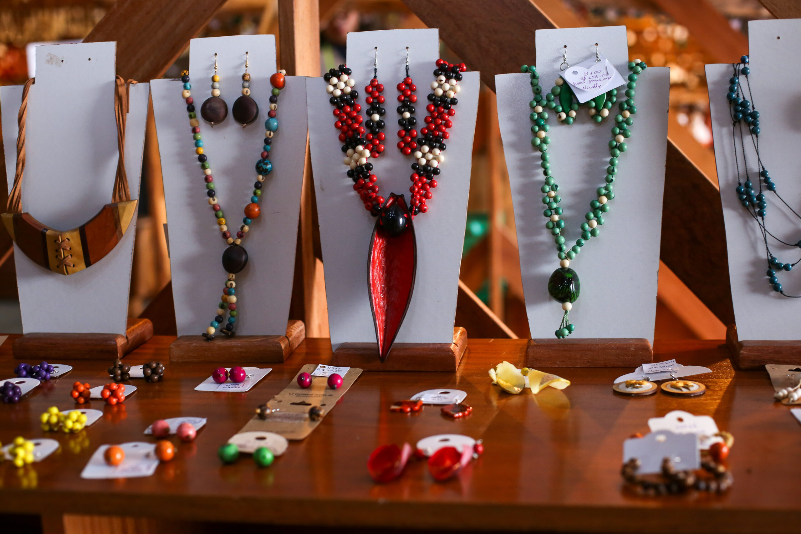 Apesar dos desafios, a artesã não desistiu e, com o início da exposição de seus trabalhos na Casa do Artesanato, passou a ser reconhecida pelas instituições públicas e privadas. Márcia chega a atuar em feiras como instrutora, por meio do PAB Acre e Nacional. “Meu carro-chefe são os colares feitos com a semente da jarina lapidada e torneada. Também produzo pulseiras, brincos, colares decorativos, chaveiros e bolsas confeccionadas com a semente, que têm boa aceitação do público”, explica.