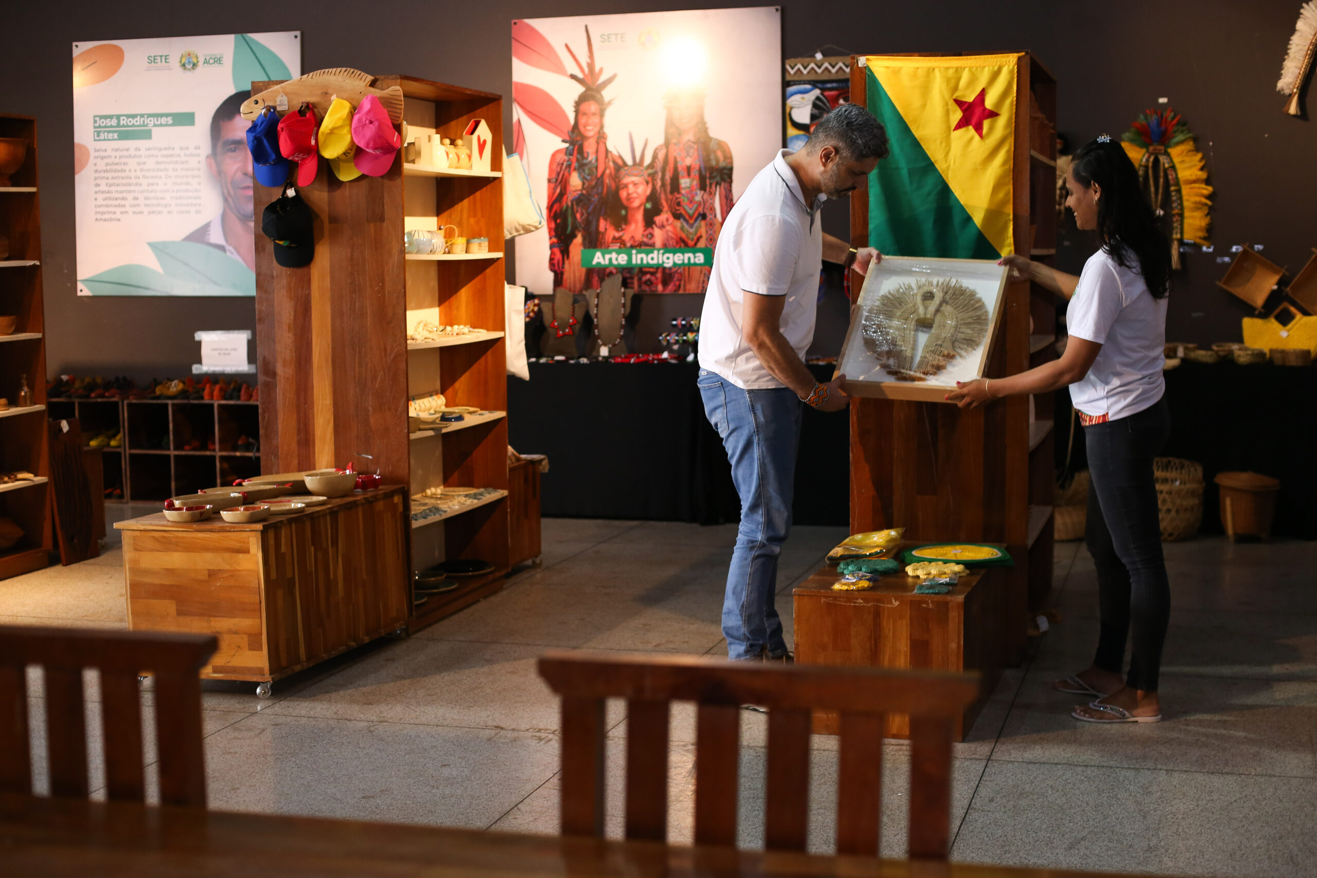 Inaugurada em 2023, no Parque da Maternidade, a Casa do Artesanato Acreano foi reinaugurada, em 2024, na Galeria de Arte Juvenal Antunes.