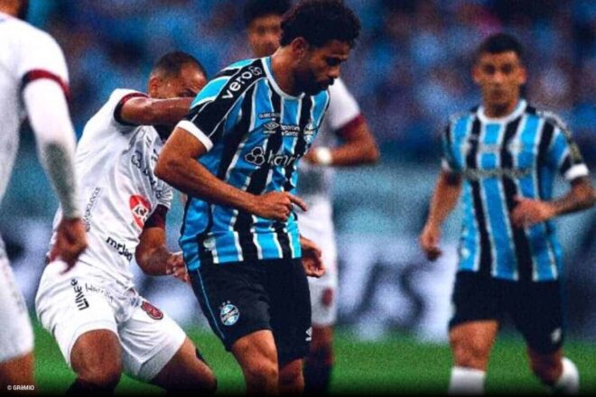 O Grêmio fez valer o mando de campo e nem precisou da vantagem pela melhor campanha para avançar às semis do Campeonato Gaúcho. Na noite deste domingo, enfrentaram o Brasil de Pelotas dentro de casa e venceram por 2 a 0 graças a gols de Cristaldo e Diego Costa.