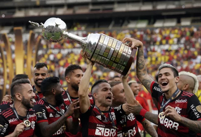 Diego, Pedro, Everton Ribeiro, Rodinei – Flamengo é campeão da Libertadores de 2022 — Foto: REUTERS/Santiago Arcos