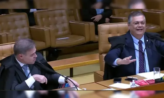 Os ministros do Supremo Tribunal Federal (STF), Flávio Dino e André Mendonça, tiveram discussão durante sessão plenária nesta quarta-feira (07) a respeito de uma regra do Código Penal que estabelece o aumento de pena em crimes contra a honra de servidores públicos.