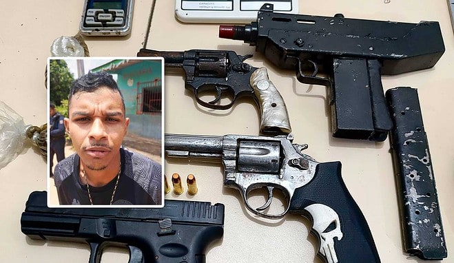 Os revolveres calibres 32 e 38, estavam escondidos, próximo a submetralhadora de fabricação argentina.
