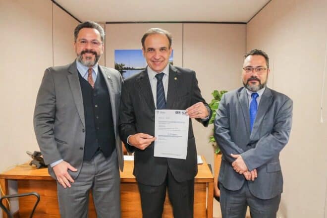 Petronio Antunes participou da reunião acompanhado pelo deputado federal Alan Rick e pelo técnico da representação do Acre em Brasília, Elomar Chaves. Foto: David Casseb
