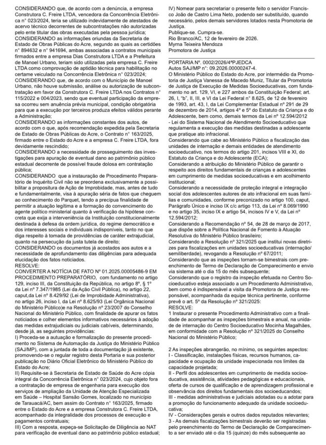 - Registro e formalização do procedimento no Sistema de Automação da Justiça (SAJ/MP) e publicação da portaria no Diário Oficial Eletrônico do MPAC;