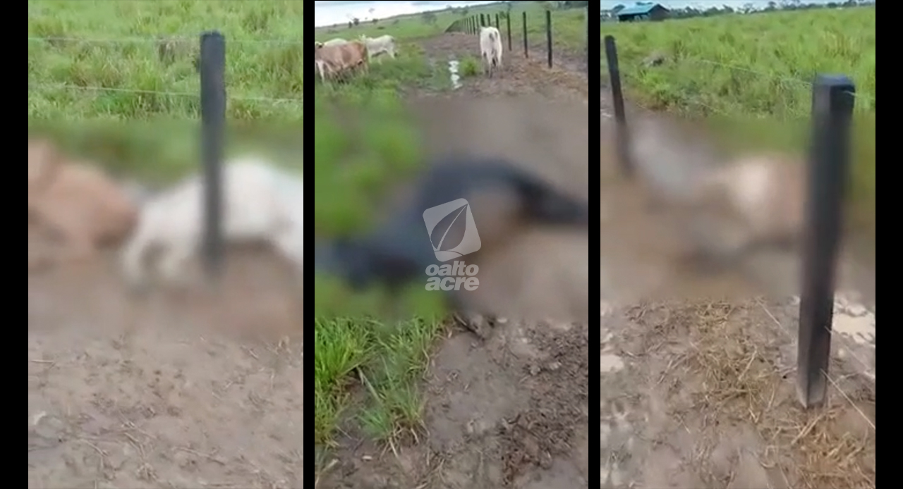 Uma descarga elétrica atingiu uma propriedade rural na comunidade Triunfo, zona rural de Plácido de Castro, e provocou a morte de cabeças de gado e de um cavalo. O caso teria ocorrido na terça-feira (10) e ganhou repercussão após a divulgação de um vídeo nas redes sociais.