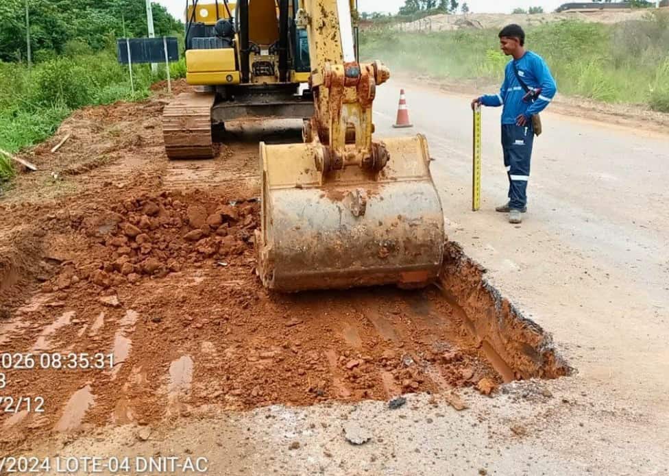 A partir de abril, o DNIT iniciará a execução de macadame e de capa sobre capa entre Manoel Urbano e Feijó, em pontos estratégicos da rodovia. O macadame é uma técnica de pavimentação que consiste na aplicação e compactação de camadas de pedras britadas de diferentes tamanhos, formando uma base resistente e estável para receber o revestimento asfáltico. Esse método é amplamente utilizado na recuperação de estradas, especialmente em regiões com solo úmido e tráfego intenso, por aumentar a durabilidade da via.