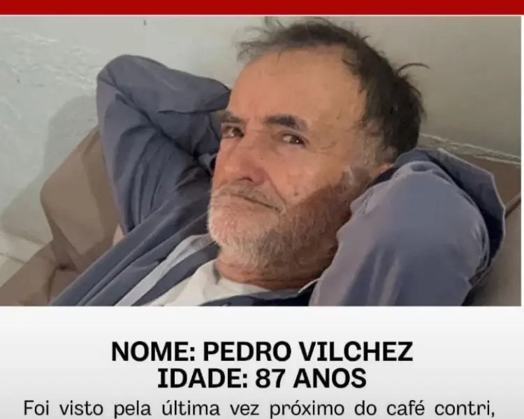 A informação sobre o desaparecimento foi confirmada nesta segunda-feira (19) pelo filho do idoso, Marcos Vilchez, que solicita apoio para localizar o pai o quanto antes.