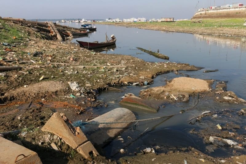 Esgoto despejado na orla de Educandos, no Centro de Manaus: saneamento precário. Foto: Valter Calheiros