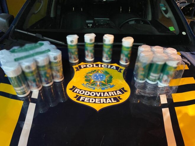 A Polícia Rodoviária Federal (PRF) apreendeu aproximadamente 3 kg de metanfetamina (cristal) durante uma fiscalização em um ônibus de transporte coletivo que fazia a linha Rio Branco (AC) a Brasília (DF). A droga estava escondida em 22 frascos dentro de uma caixa despachada no Acre e declarada como “peças usadas”, com destino a um homem residente em Goiânia (GO).
