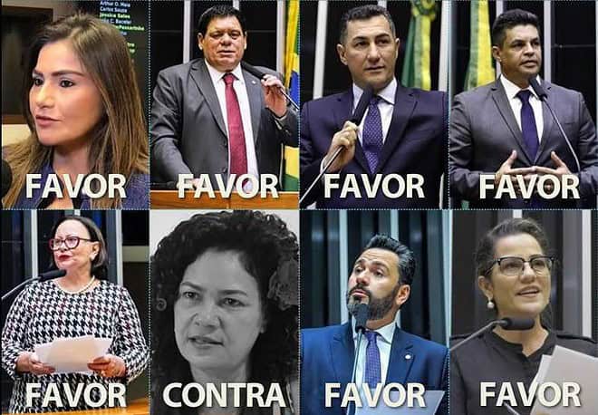 Os deputados do Acre que votaram a favor foram Flaviano Melo (MDB), Jéssica Sales (MDB), Mara Rocha (PSDB), Jesus Sérgio (PDT), Manuel Marcos (PRB), Vanda Milani (Solidariedade) e Alan Rick (Democratas). A deputada pelo PCdoB, Perpétua Almeida foi a única representante do Estado a votar contra.