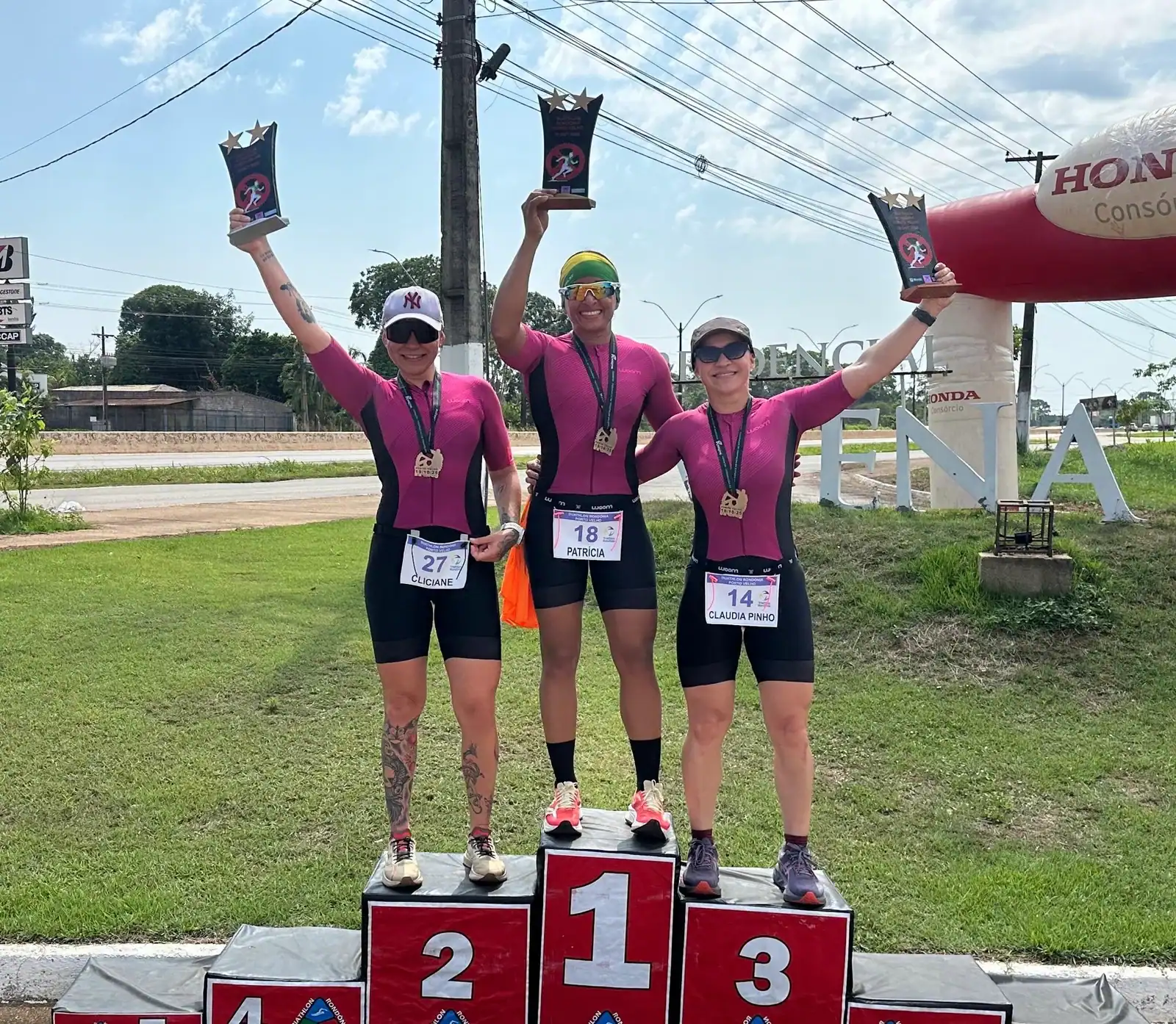 As duatletas acreanas Patrícia Maciel (Contém Vida e AME), em primeiro, Ane Lima (2º) e Cláudia Pinho (3º) dominaram o pódio da etapa do Circuito Norte de Duathlon disputada neste domingo, 19, em Porto Velho, Rondônia.