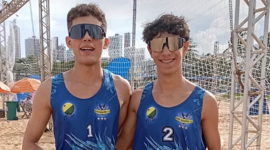 Os acreanos Leandro e Brunno, do Colégio Águias do Saber, enfrentam a dupla de Sergipe nesta quinta, 21, em João Pessoa, na Paraíba, e se vencerem estarão na semifinal do vôlei de praia nos Jogos da Juventude.