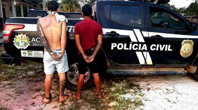 A Polícia Civil cumpriu dois mandados de prisão na manhã desta quinta-feira (13) e prendeu dois homens acusados de tráfico de drogas e organização criminosa em Mâncio Lima. As prisões ocorreram no bairro Cobal. Os acusados serão autuados em flagrante e encaminhados para o Presídio Manoel Nery da Silva em Cruzeiro do Sul.