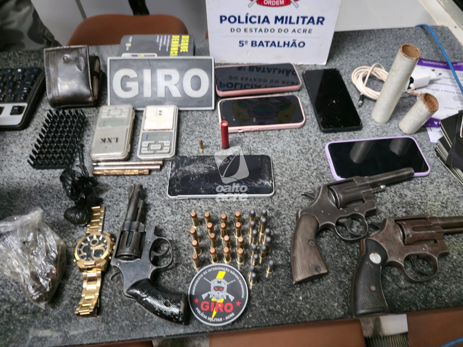 Durante a operação, foram apreendidos três revólveres, calibres .38 e .32, todos municiados, além de diversas munições de diferentes calibres. No interior do imóvel, os policiais encontraram celulares, balanças de precisão, porções de substâncias aparentando ser cocaína e maconha, entre outros objetos.