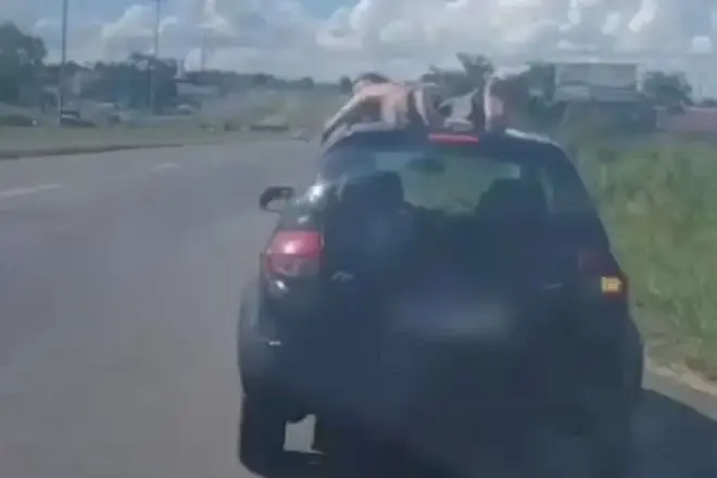 Dupla é presa após passageiro viajar pelado em teto de carro a 100km/h