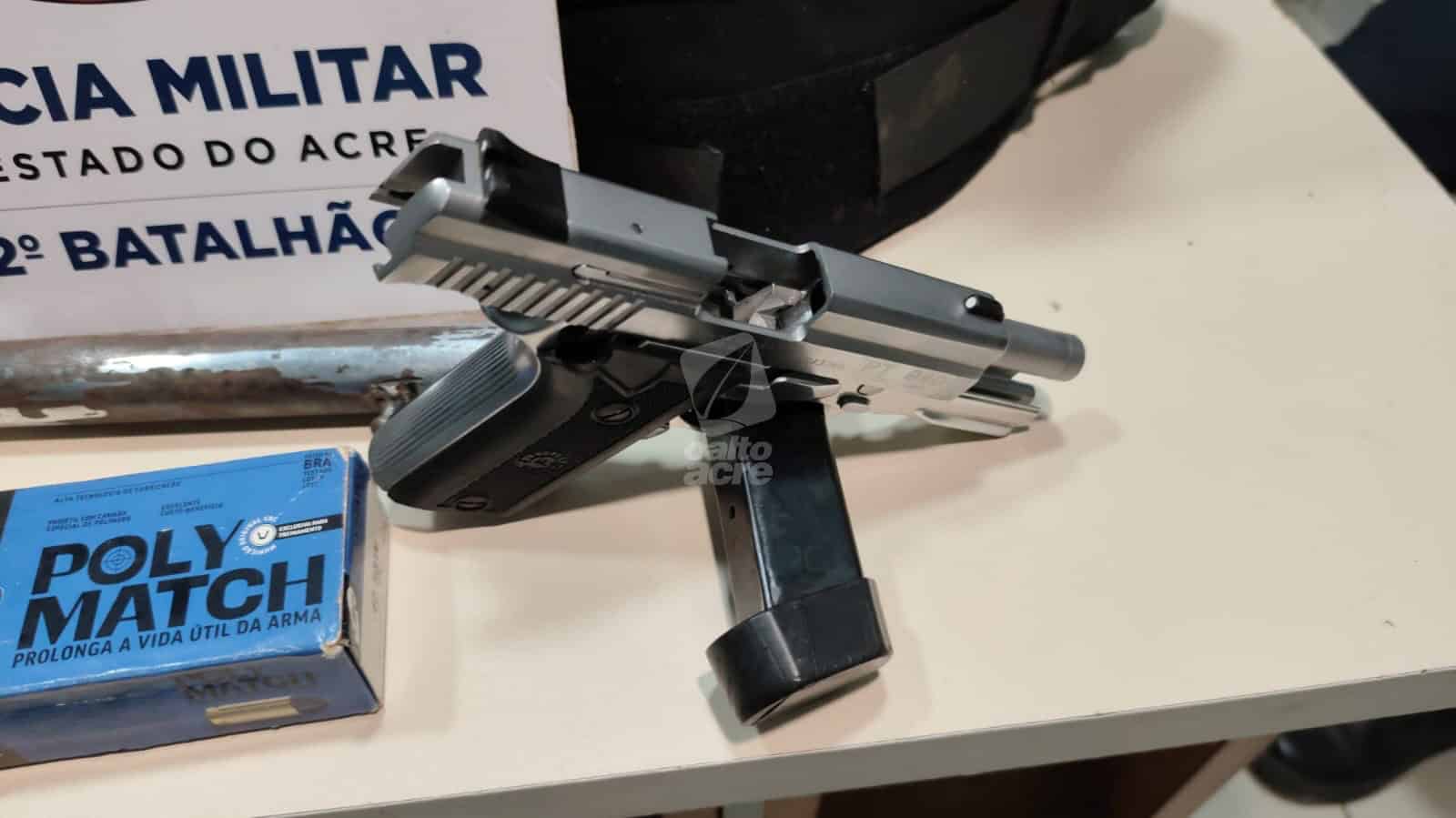 Segundo informações do 2º Batalhão da Polícia Militar, a guarnição realizava patrulhamento de rotina quando avistou um dos suspeitos com volume suspeito na cintura. Ao notar a aproximação dos policiais, Raimundo Carlos demonstrou nervosismo e tentou fugir em direção a uma residência, mas foi interceptado.