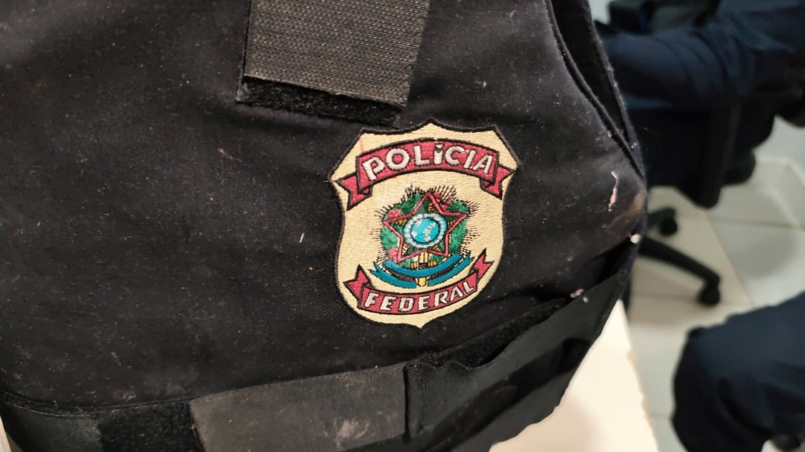 Polícia apreende espingarda, pistola, munições e coletes, um deles com identificação da PF; suspeitos foram encaminhados à DEFLA