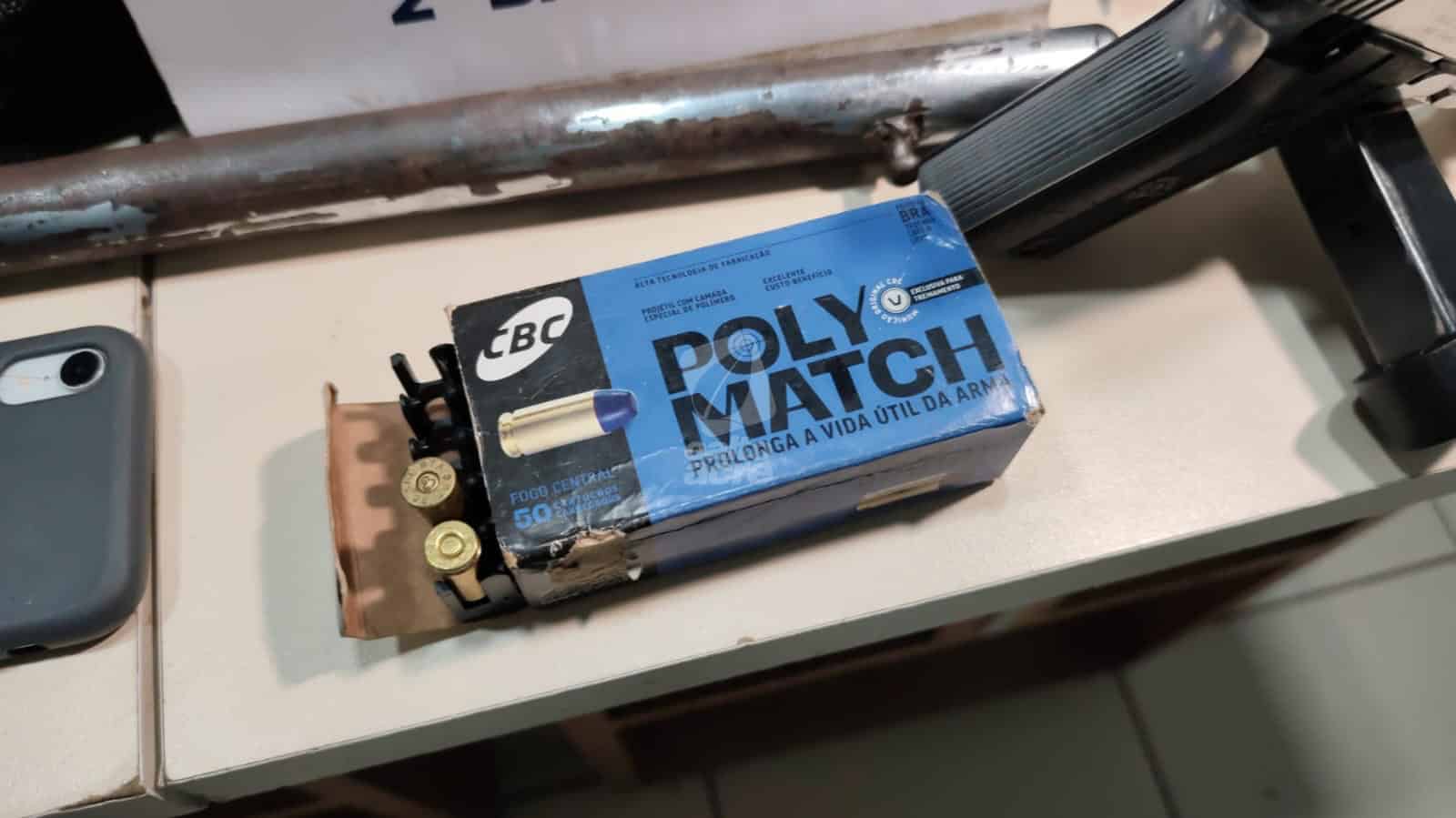 No local indicado, os policiais encontraram Elias da Cruz Oliveira Neto, que portava uma pistola calibre .40 com uma munição na câmara e outra de calibre .38 no bolso. No interior do imóvel foram encontrados ainda dois coletes balísticos, sendo um deles com identificação da Polícia Federal.
