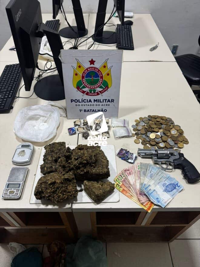 Uma ação realizada por policiais militares do 1º Batalhão resultou na prisão de Alan da Silva, de 23 anos, e Thiago da Silva, de 18, na noite de quarta-feira (15), pelo crime de tráfico de drogas. A abordagem ocorreu em uma residência localizada na Rua Habitat Brasil, no bairro João Eduardo, em Rio Branco.
