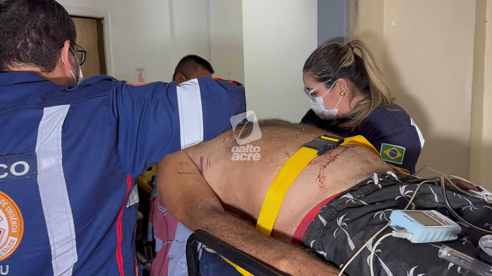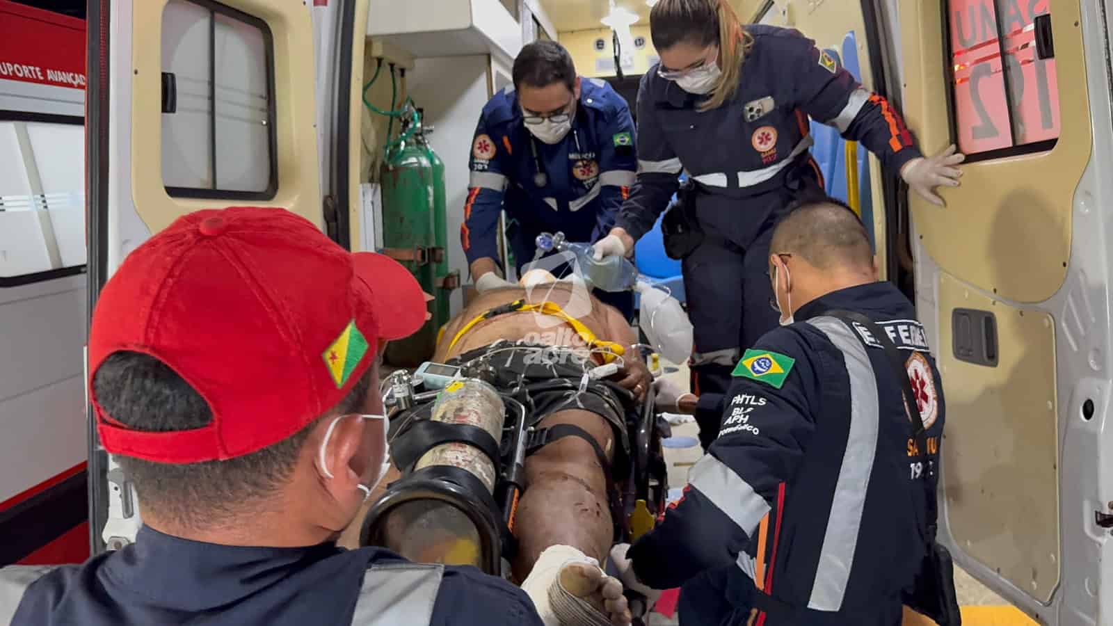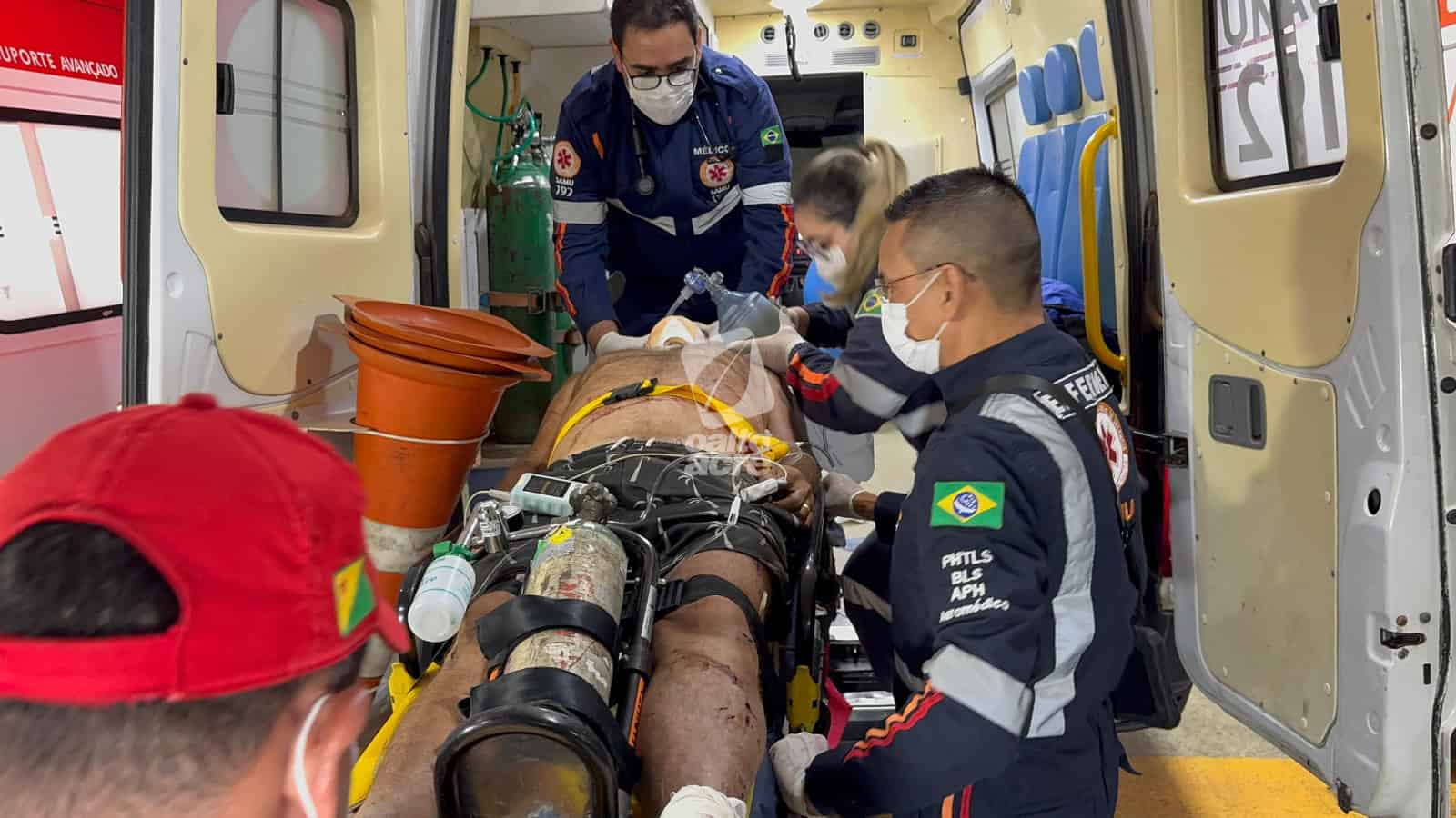 Após ser estabilizado, Eliel Mesquita foi encaminhado ao Pronto-Socorro de Rio Branco em estado de saúde estável. Ele passará por avaliação de médicos especialistas e poderá ser submetido a procedimentos cirúrgicos.