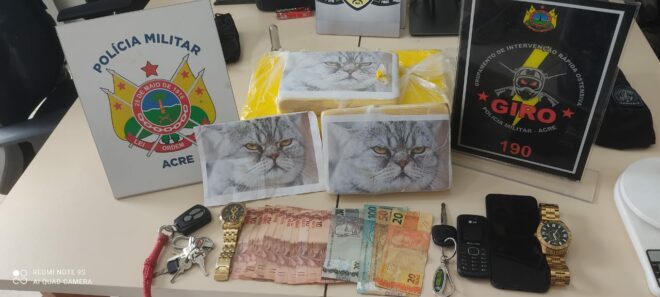 Na manhã desta terça-feira, 5, militares do Grupo de Intervenção Rápida Ostensiva (GIRO) da Polícia Militar do Acre (PMAC) apreenderam mais de nove quilos de drogas, no bairro Tucumã. A substância entorpecente se encontrava com dois homens, que transitavam em um veículo.