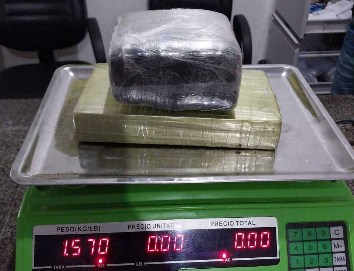 Os militares realizavam patrulhamento quando visualizaram uma mulher com uma mochila em uma parada de ônibus. A equipe procedeu a abordagem e encontrou, no interior da mochila, um quilo de cocaína e 520 gramas de maconha. Questionada, ela informou que estaria levando para Guajará-Mirim, no Amazonas.
