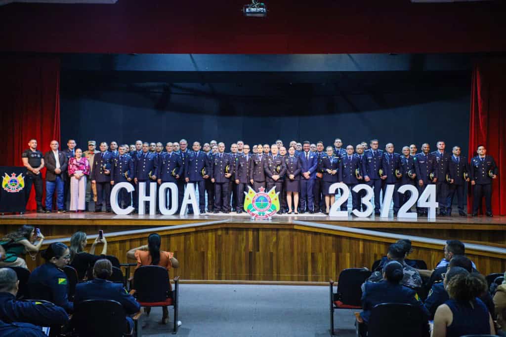 Com a presença do governador Gladson Cameli, 86 militares celebraram a formatura do encerramento do curso de habilitação de oficiais (Choa) e do curso de aperfeiçoamento de sargentos (CAS) na tarde desta segunda-feira, 19, no auditório do Departamento de Trânsito do Acre (Detran-AC). Foram 45 pelo Choa e 41 pelo CAS. O evento contou com familiares e amigos dos militares que comemoraram a formação.